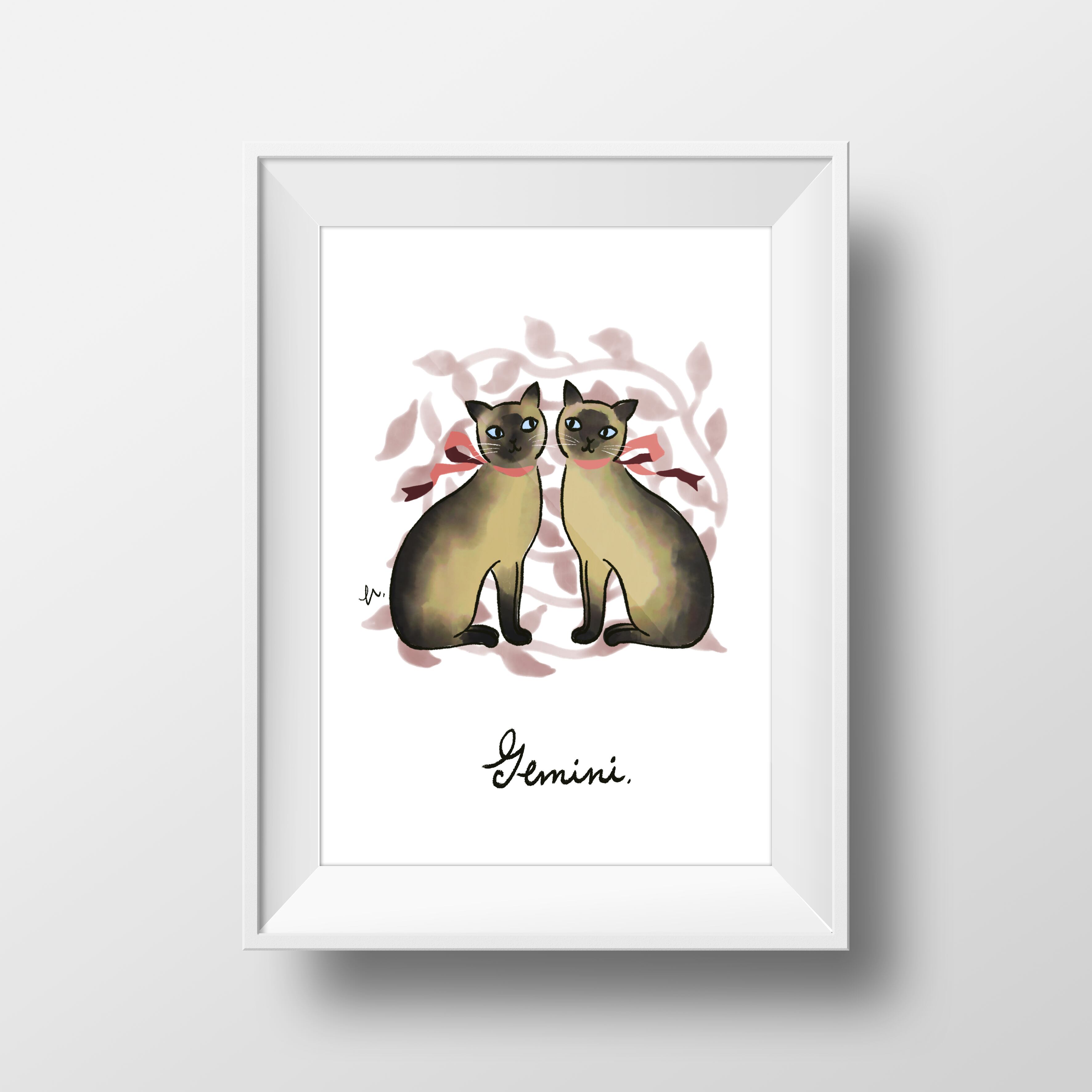 Zodinyacシリーズ(12星座×猫)イラスト/ 双子座 Gemini ♊️