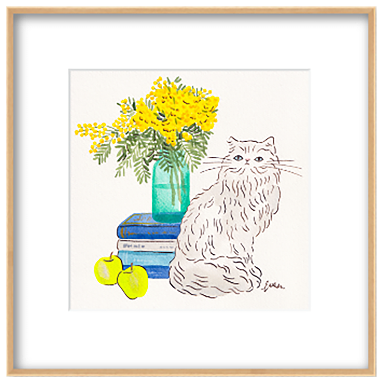 ミモザの明るい黄色に、季節が動き出す気配やインテリアの中に猫たちがそっと溶け込む、穏やかで光に満ちた日常を表現しました。