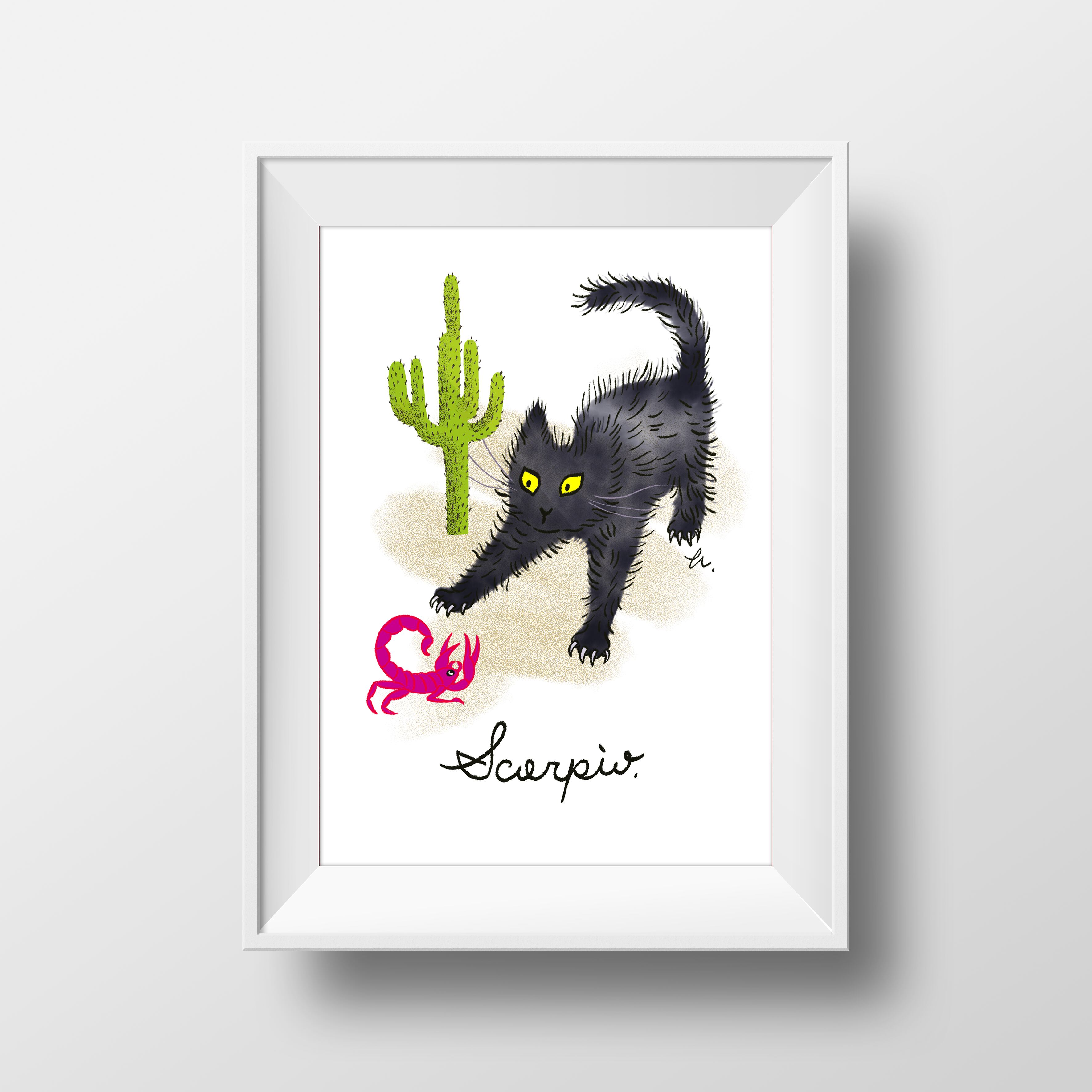 Zodiac(星座)× Cat(猫)の造語をもとに、12星座それぞれの性質やイメージを、一匹の猫に重ねて描きました。